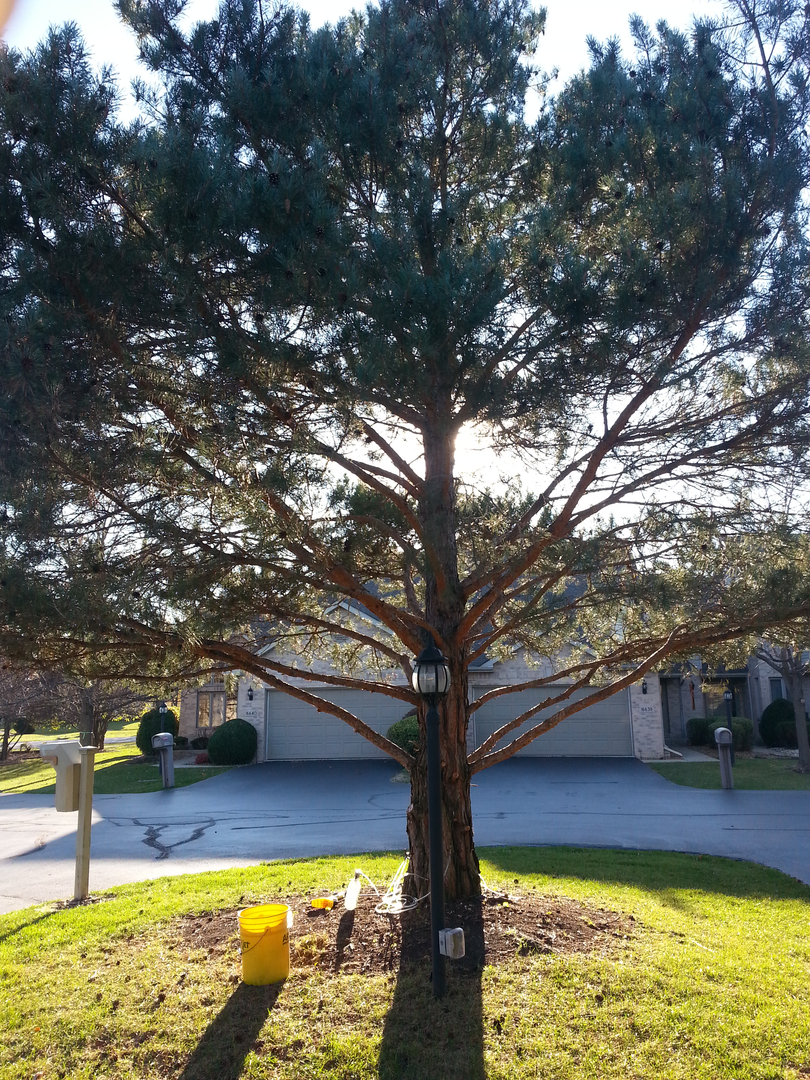 Pine Wilt Disease is responsible much of the time for killing one Pine tree after the next where plantings are relatively close together. This disease is delivered to the trees by a beetle that comes from infected trees with the disease on their bodies. Keeping your trees health in in the first place is job one for winning against this disease. When we find it on your property we treat all Pines nearby with a trunk injected insecticide to stop the continued spread of this pest.