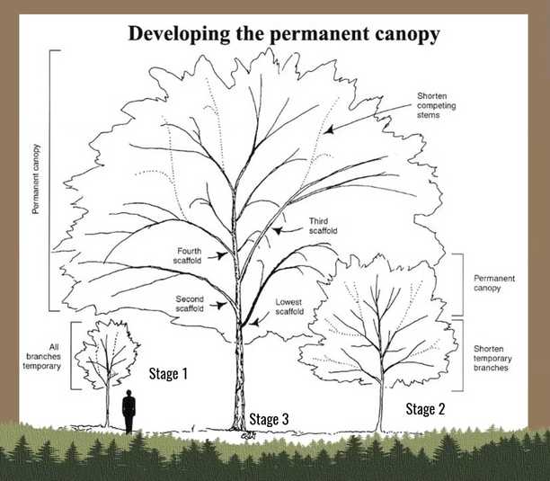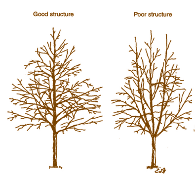 This is an example of how to fix structural defects in a tree that has an upright or pyramidal shape.